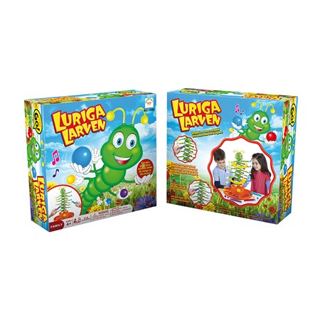 Beskrivning: Lyckas du lägga alla dina kulor med hjälp av tången i larvens händer samtidigt som den rör sig till musiken? Det är riktigt klurigt eftersom den där busiga larven aldrig är still. Ett roligt familjespel för alla åldrar. Rekommenderas från 4 år. Ej lämplig för barn under 3 år (innehåller smådelar). Innehåller: 1st bas, 1st larv, 4st fästen, 24st färgade kulor, 1st ark med klistermärken och instruktioner. Drivs av 3X AA batterier (medföljer ej).